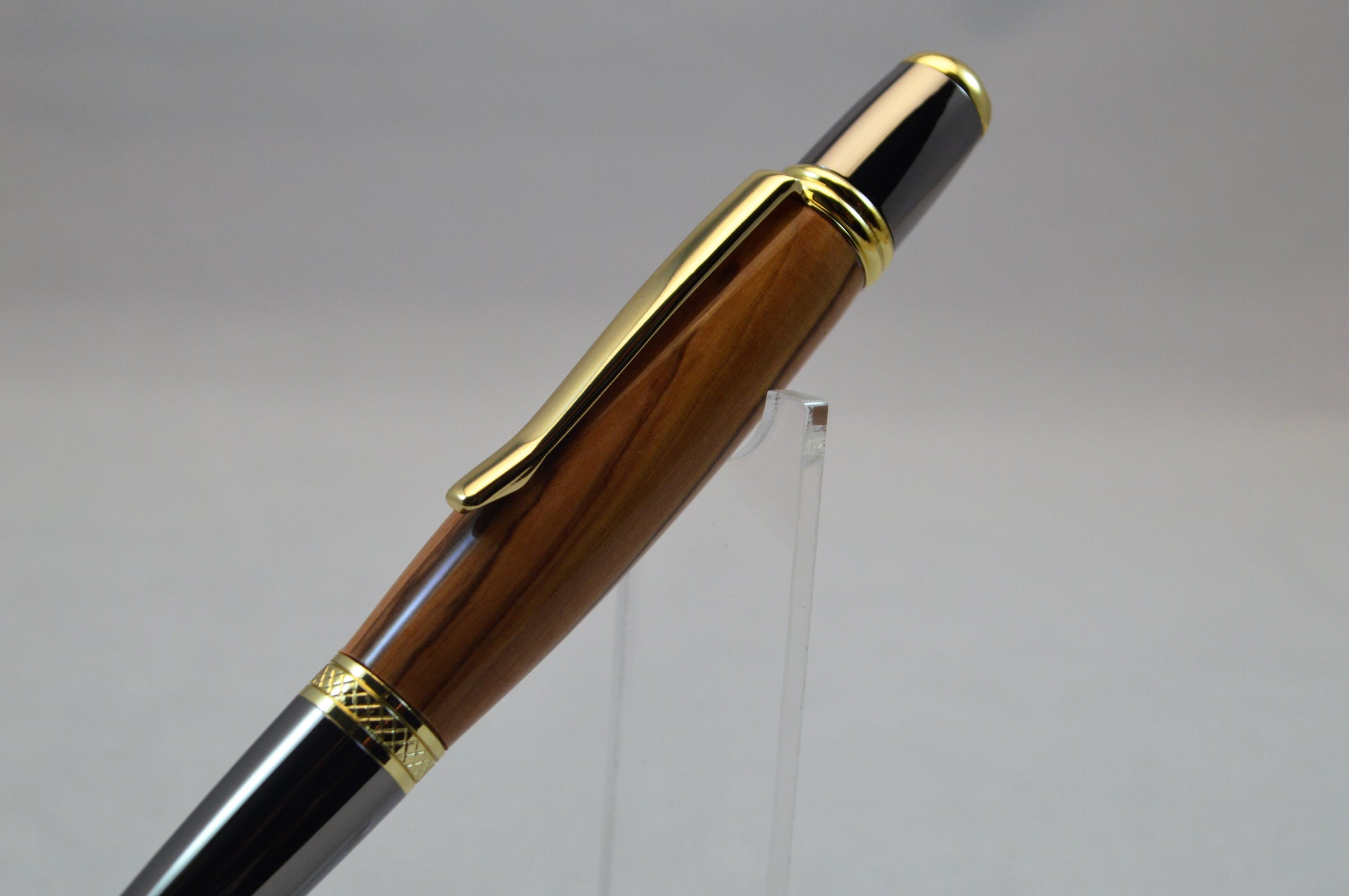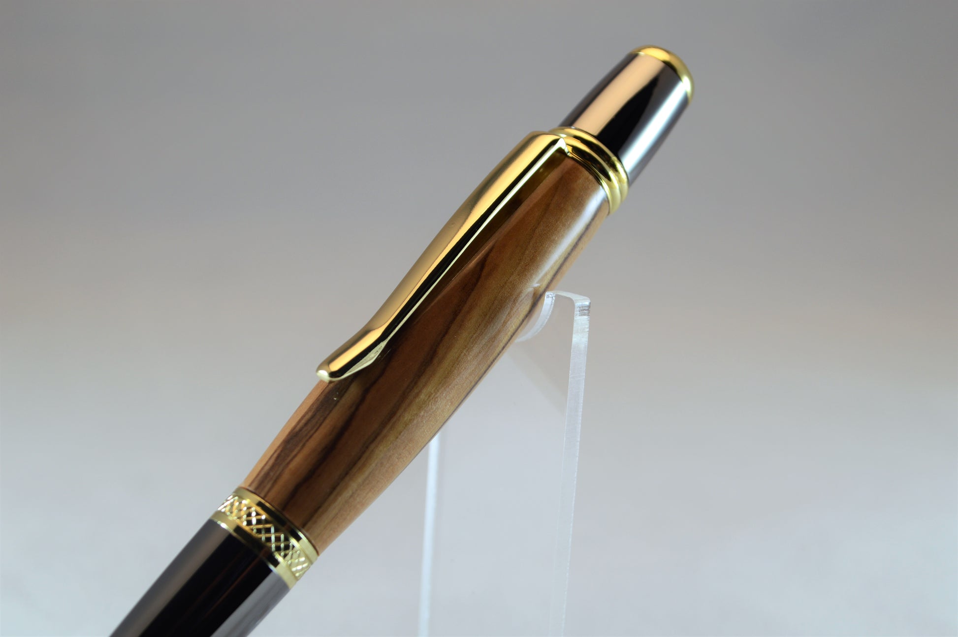Handcrafted Bethlehem Olivewood Twist Pen in Gold Titanium and Black Titanium Finish