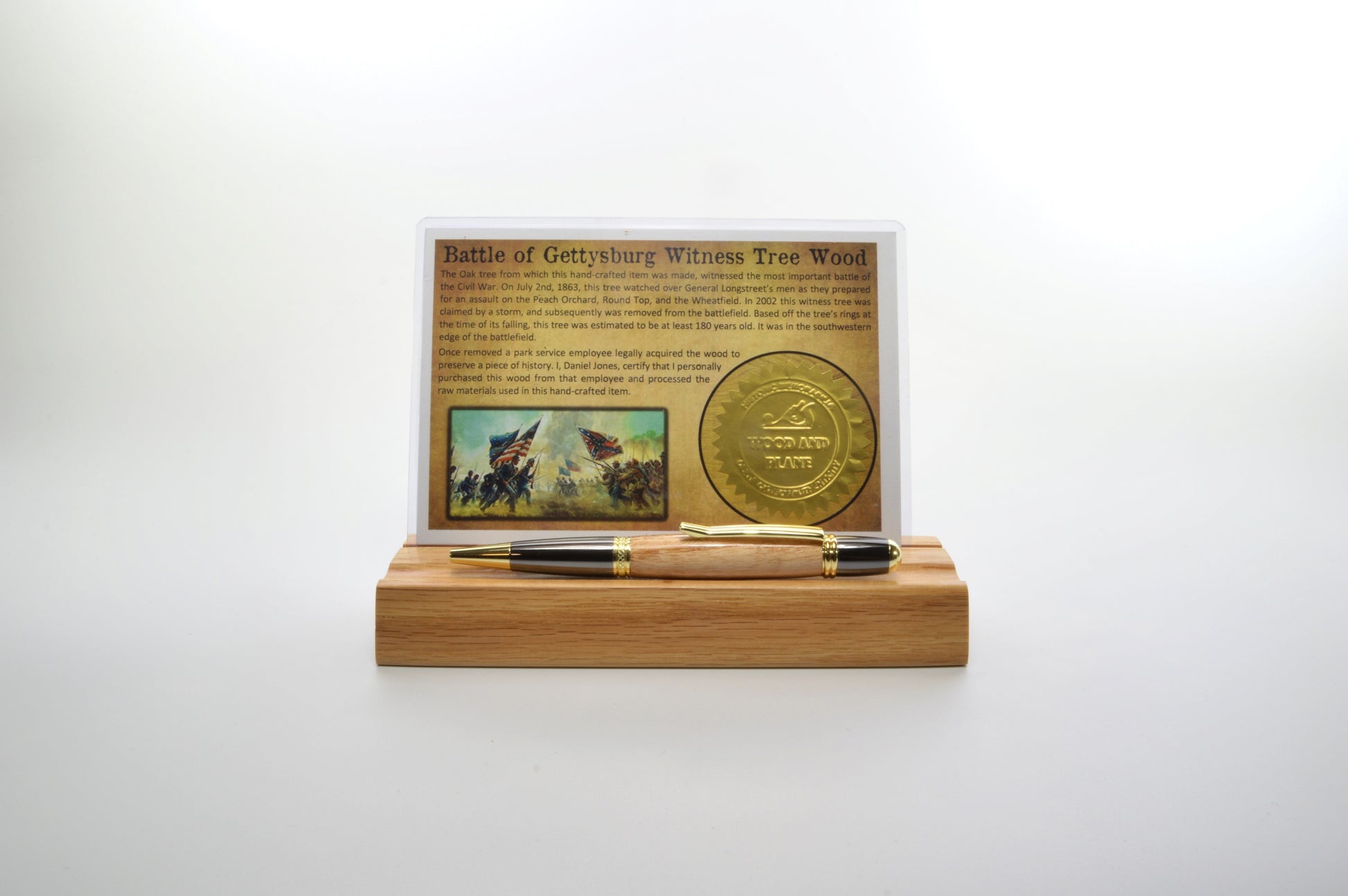 Handcrafted Gettysburg Battlefield Witness Wood Pen in Gold Titanium and Black Titanium