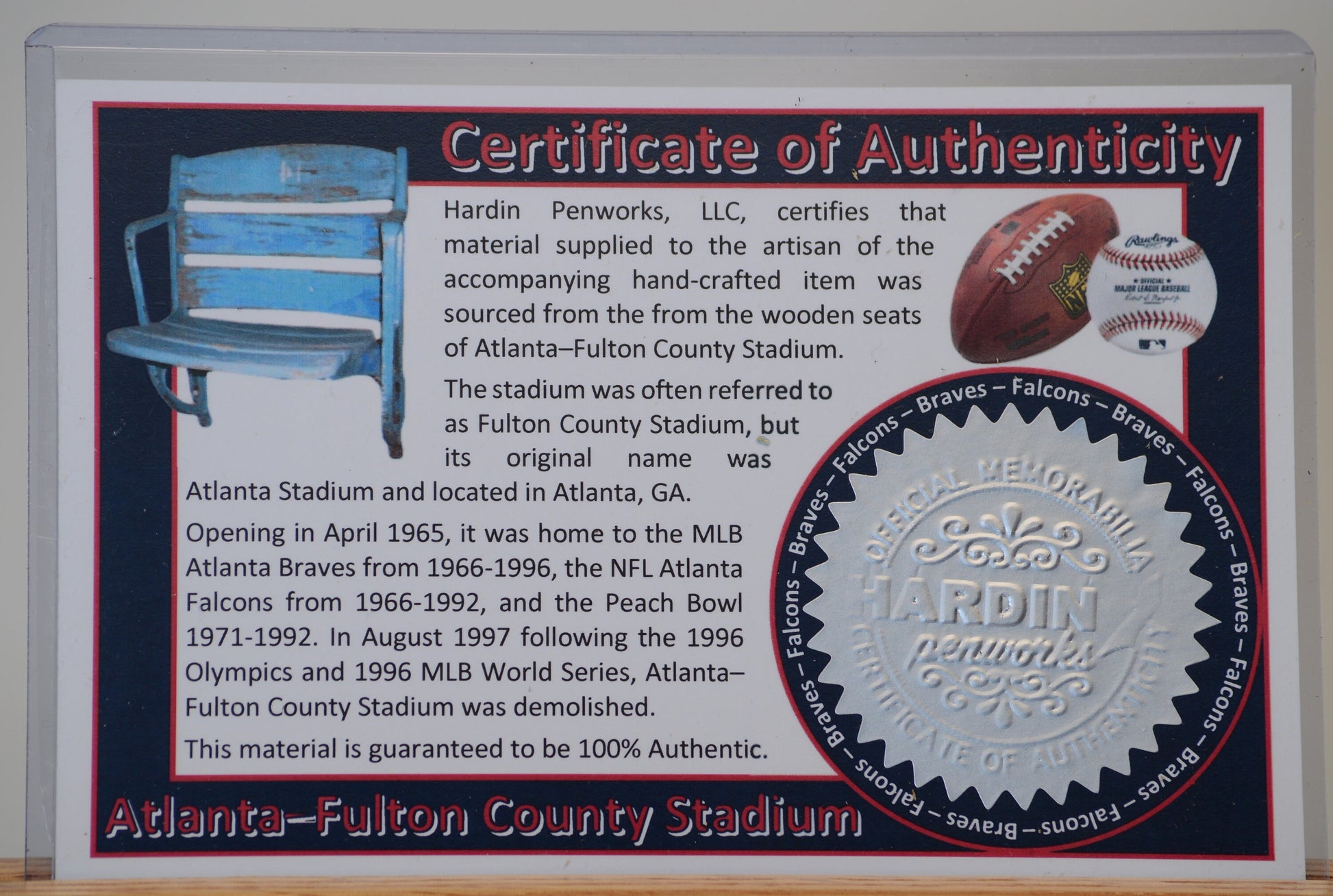 Handcrafted Pen Made From the Fulton County Stadium Seats, Home of Atlanta Falcons and Atlanta Braves