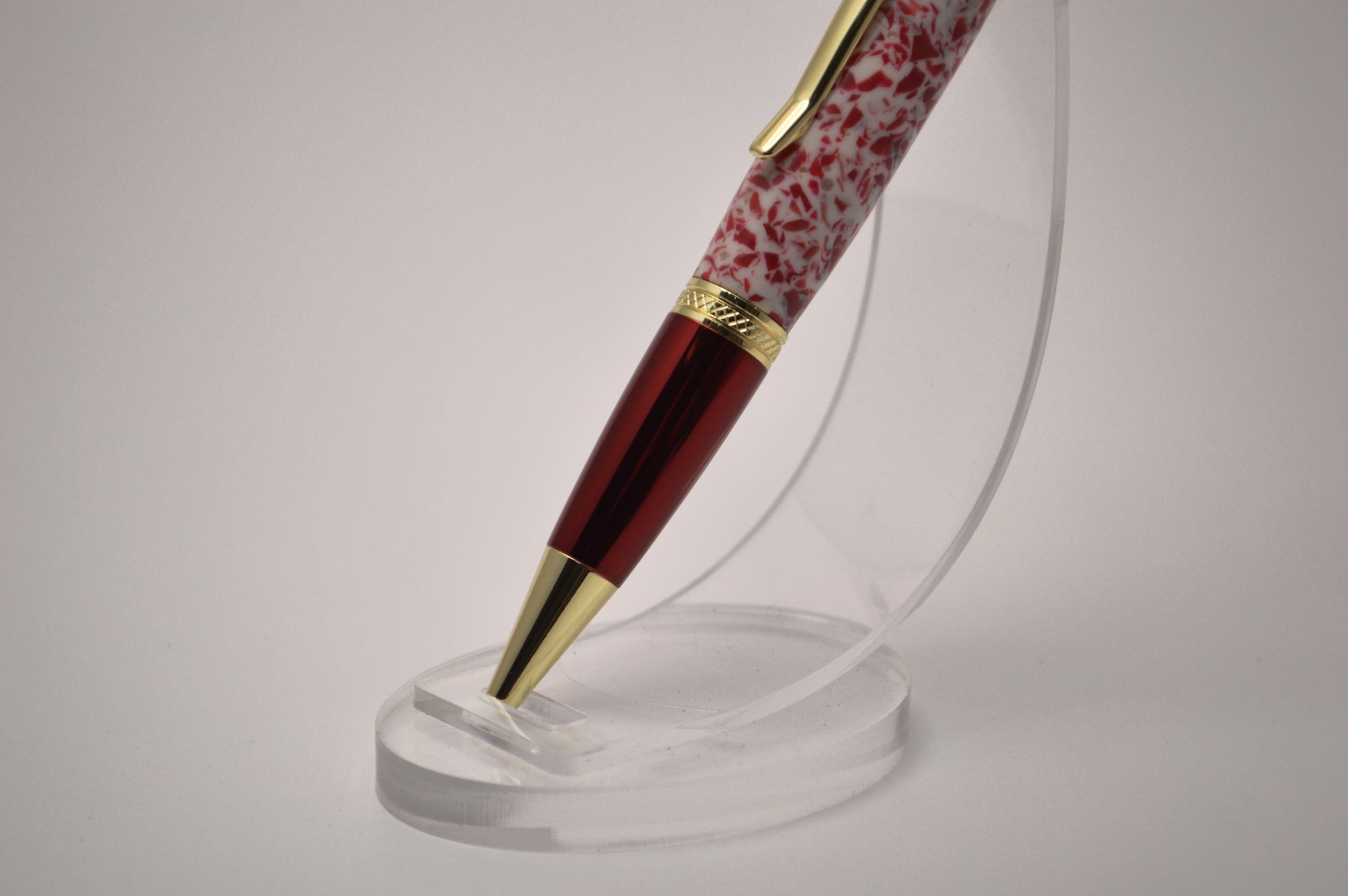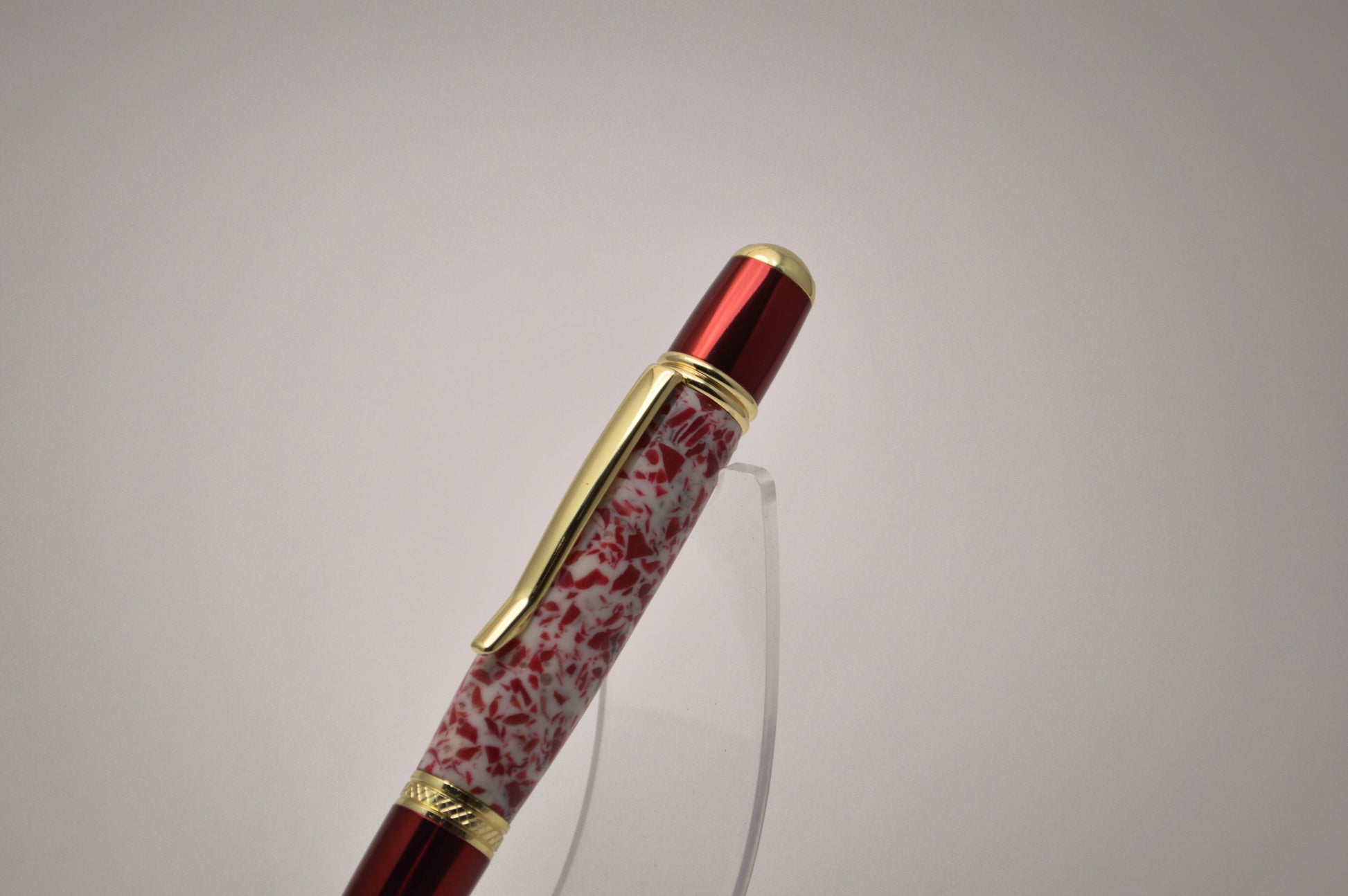 This Red and Gold twist pen is handcrafted from plastic seats from Bryant-Denny Stadium, home field of the University of Alabama Crimson Tide. The body of the pen is made from shredded red plastic stadium seats from Bryant-Denny Stadium and then cast in resin. The casting is then hand turned and finished. Opening in 1929, it was originally called Denny Stadium in honor of the school's president from 1912 to 1932, George H. Denny. In 1975 the state legislature added longtime head coach Paul "Bear" Bryant to the stadium's name.