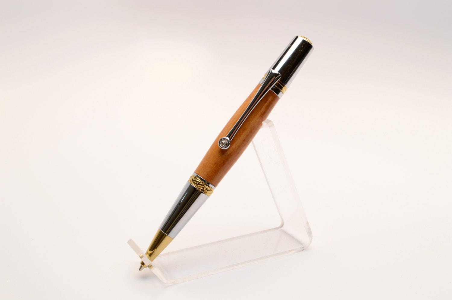 Majestic Squire Twist Pen in Lebanese Cedar with Gold Titanium, Chrome, and Swarovski Crystal