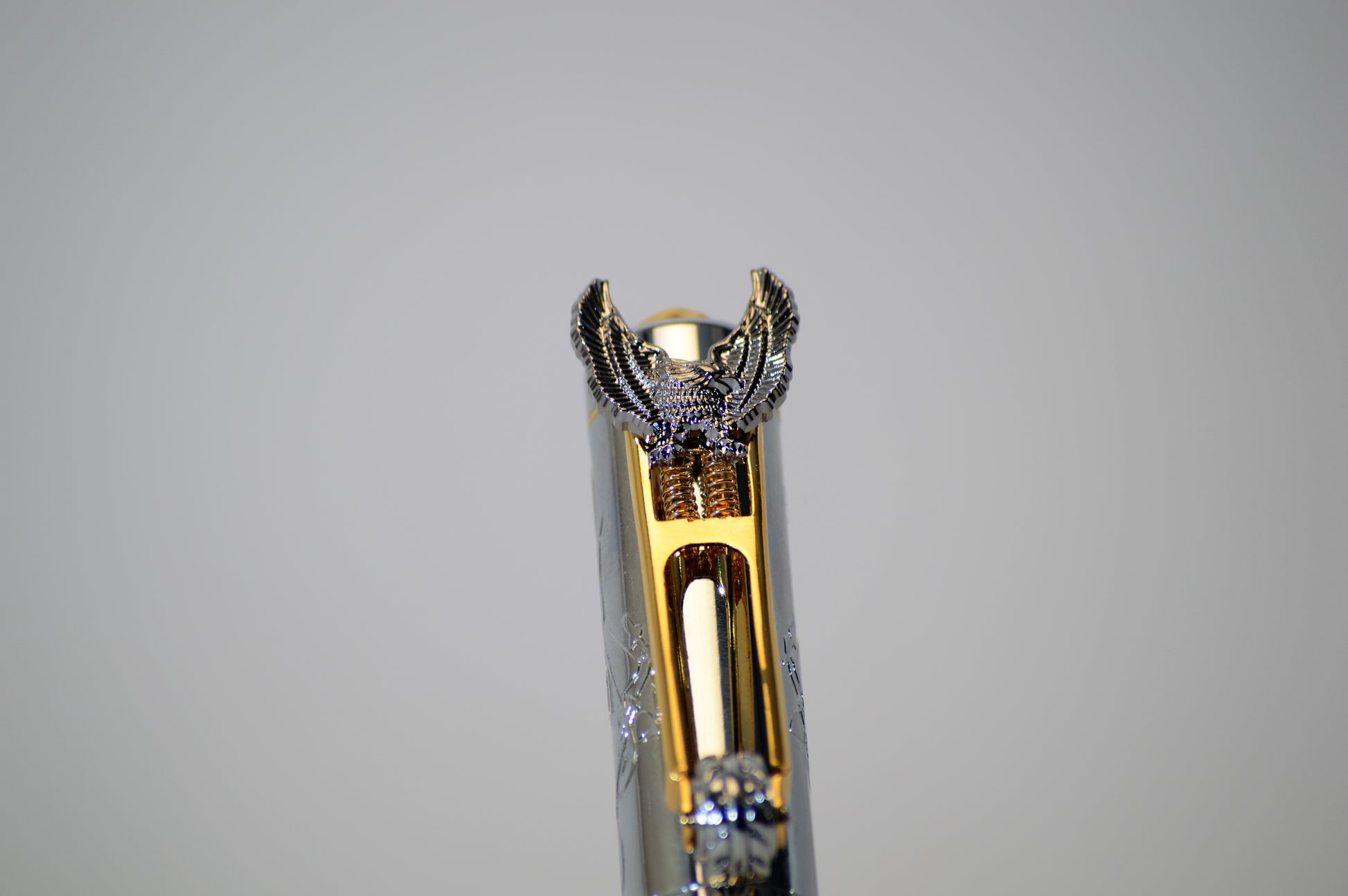Celebrate your passion for the open road with this striking motorcycle pen, featuring hand-cast black and orange acrylic paired with chrome accents. Every pen is individually crafted, making yours truly one-of-a-kind. The distinctive eagle-adorned Springer-style clip keeps your pen secure and accessible, while etched chopper designs line the barrel and a bold skull adorns the cap. Perfect for riders who live for that adrenaline rush and freedom of the highway. Comes beautifully packaged in a black velvet gift pouch—an ideal gift for any motorcycle enthusiast who appreciates craftsmanship and style.