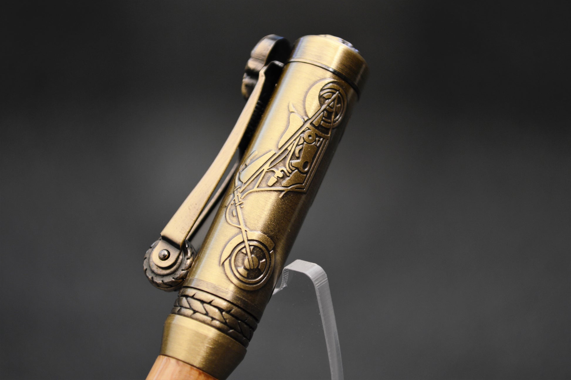 Whiskey Barrel Motorcycle Twist Pen in Antique Brass Finish
