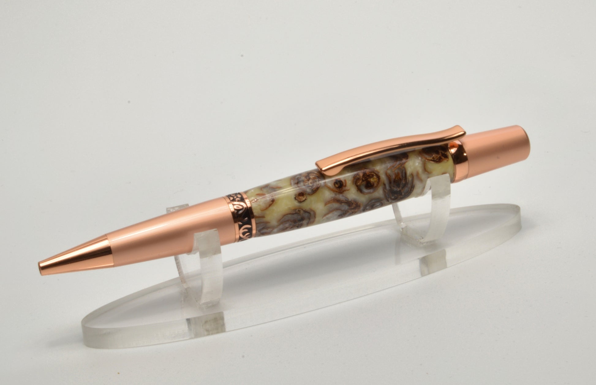 Unique Classic Twist Pen in Two Tone Copper with Handcrafted Acrylic and Mini Pine Cone Body.