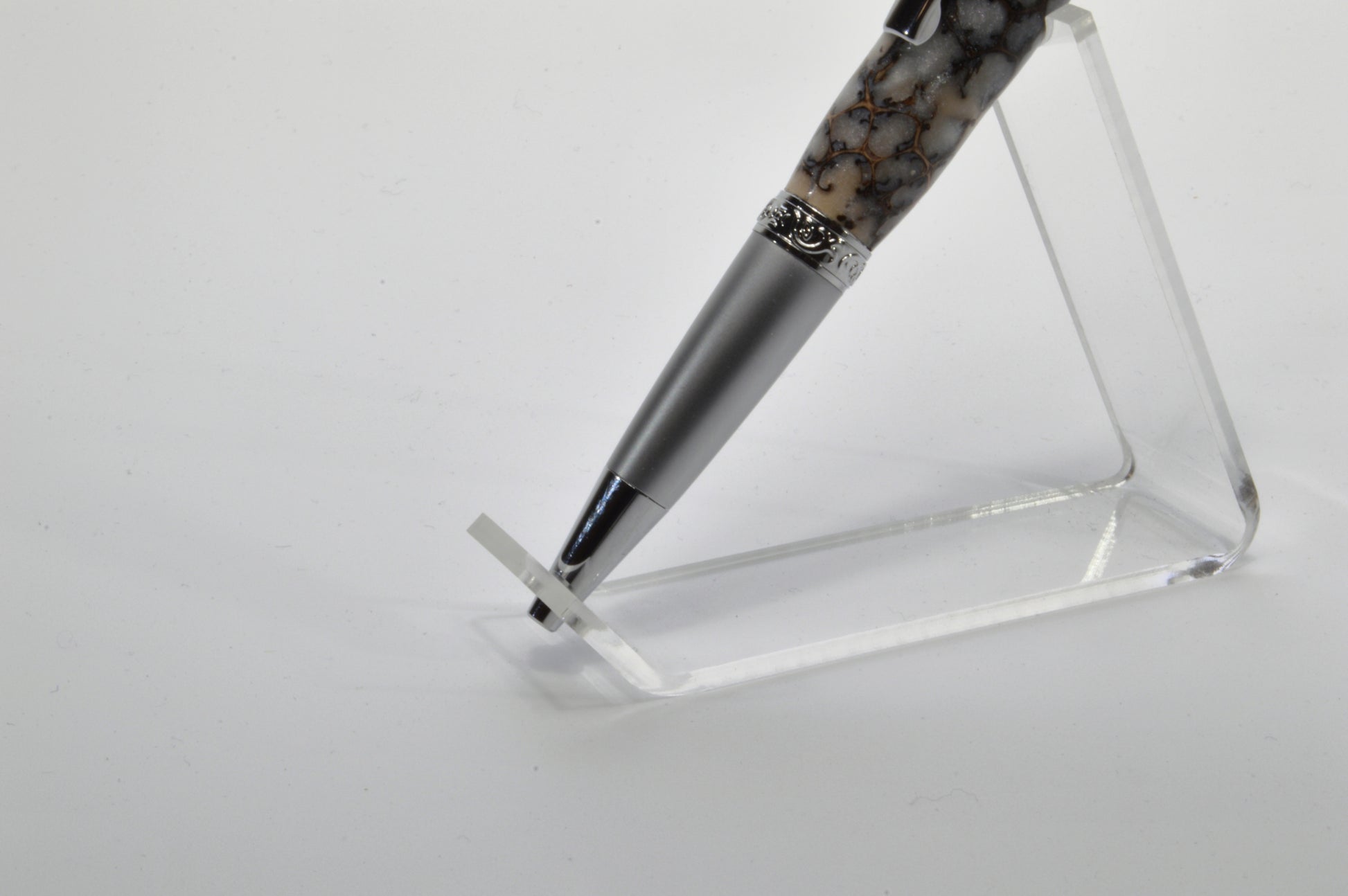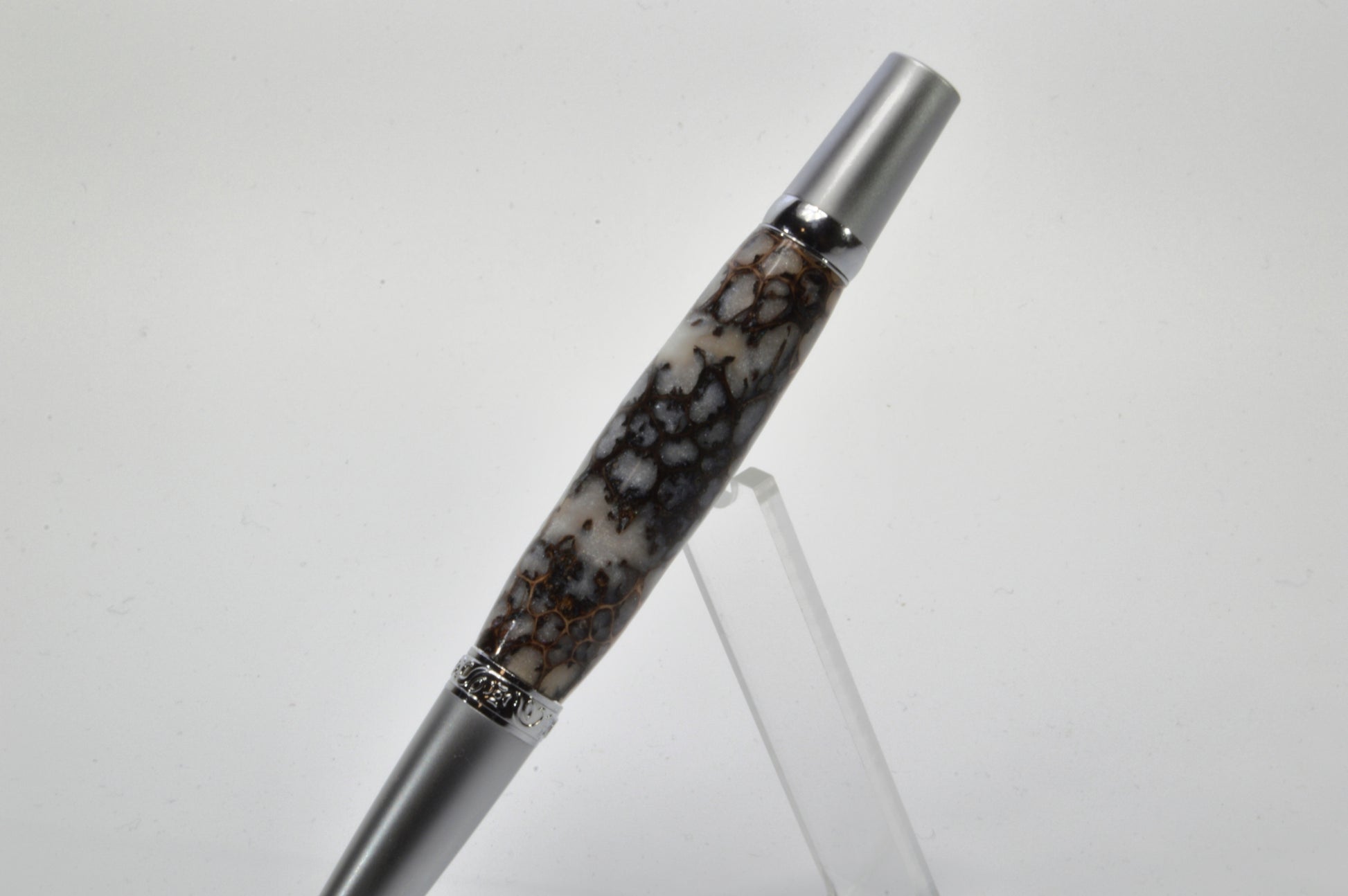 Unique Classic Twist Pen in Chrome and Satin Chrome with Handcrafted Acrylic and Sweet Gum Ball Body.
